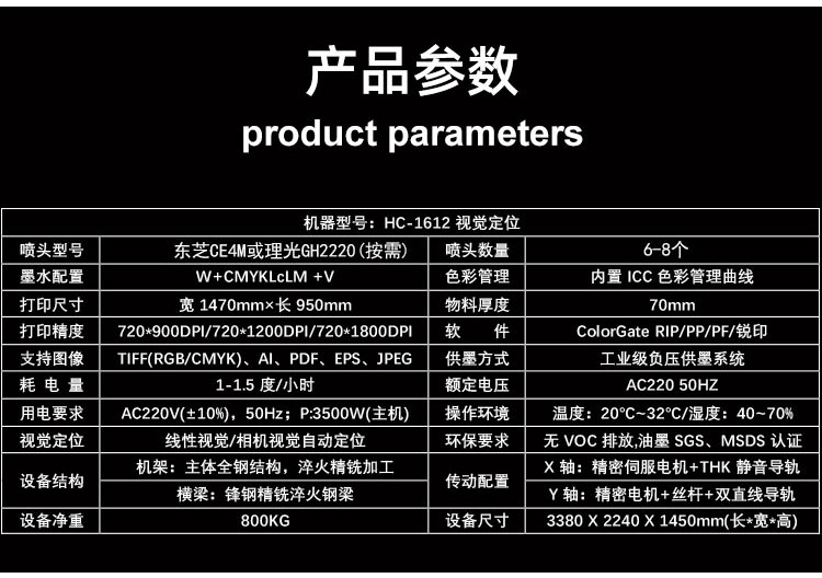 設備型号:HC-1612視覺定位UV打印機